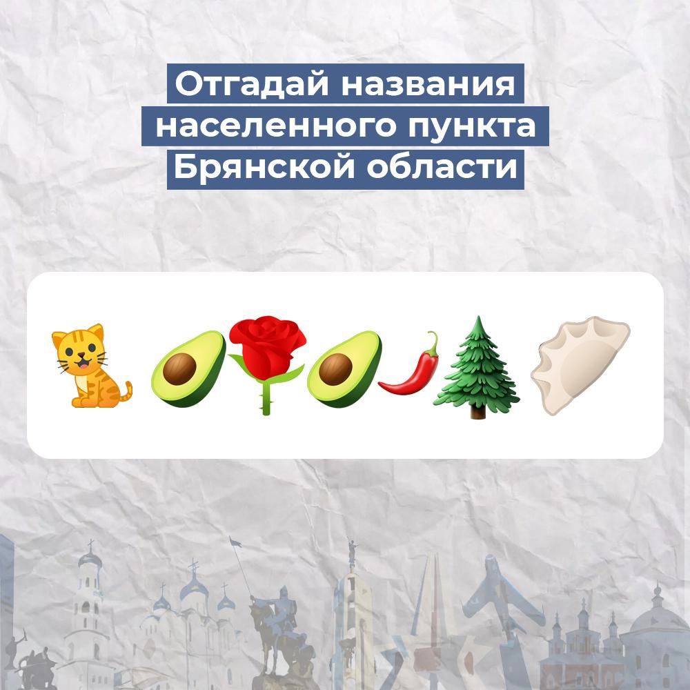 🙌Давайте начнем последнюю неделю лета с легкой интеллектуальной разминки. Нужно отгадать названия населенных пунктов Брянской области по первым буквам эмодзи
